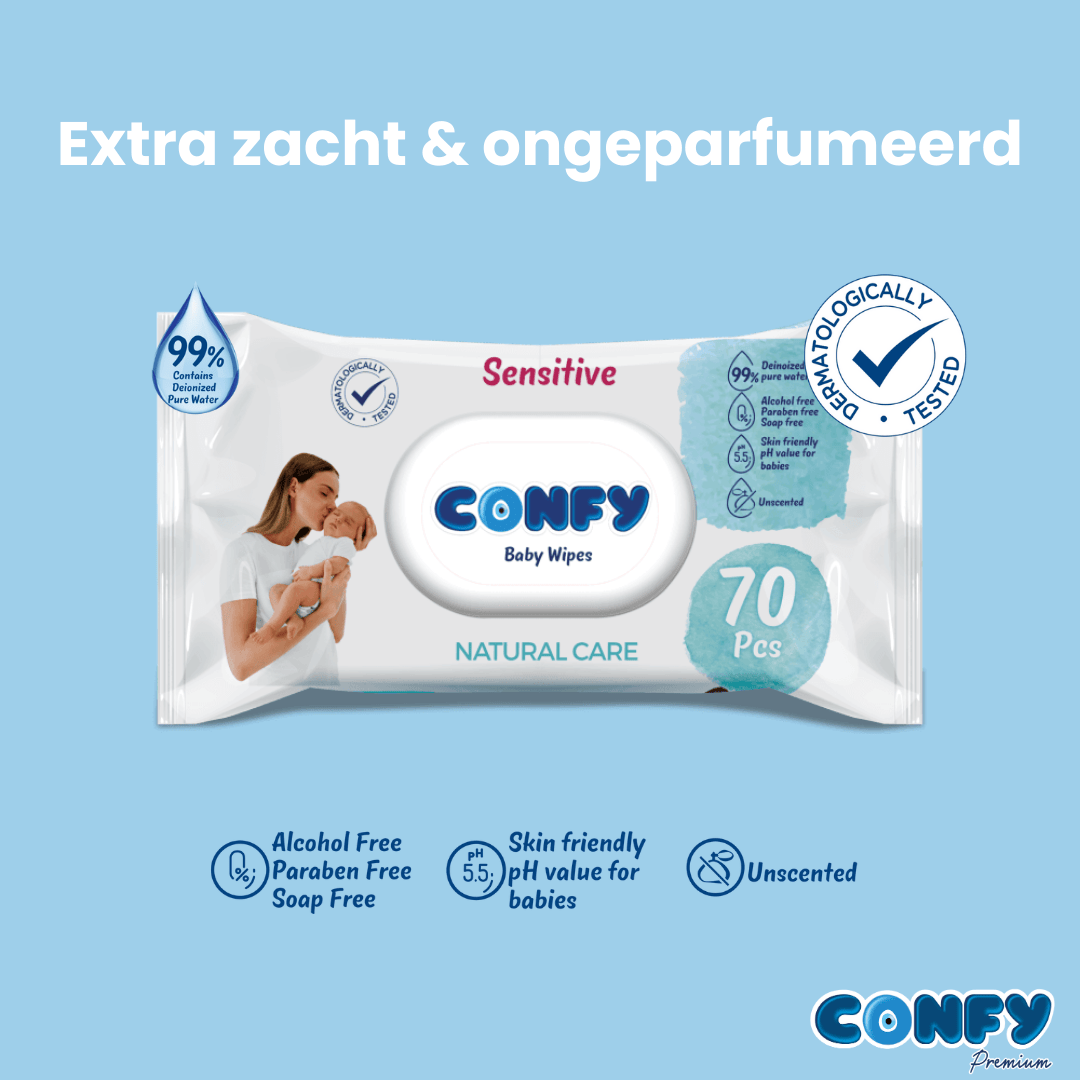 Kies voor Confy en ontdek een nieuwe standaard in babyverzorging. Onze Sensitive Babydoekjes bieden de zachtheid, kwaliteit en bescherming die jouw baby verdient.